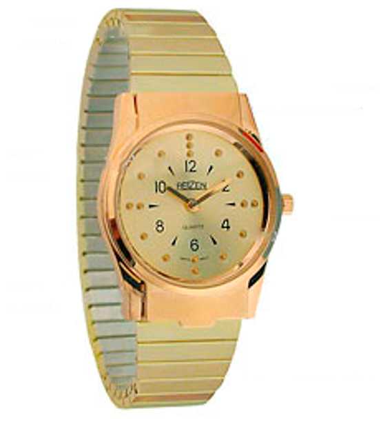 Исток-Аудио Часы REIZEN со шрифтом Брайля мужские желтсеребр. цвета на растягивающемся ремешке