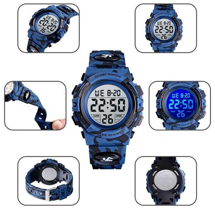 SKMEI Скмей 1556, детские, секундомер, подсветка Camouflage Blue
