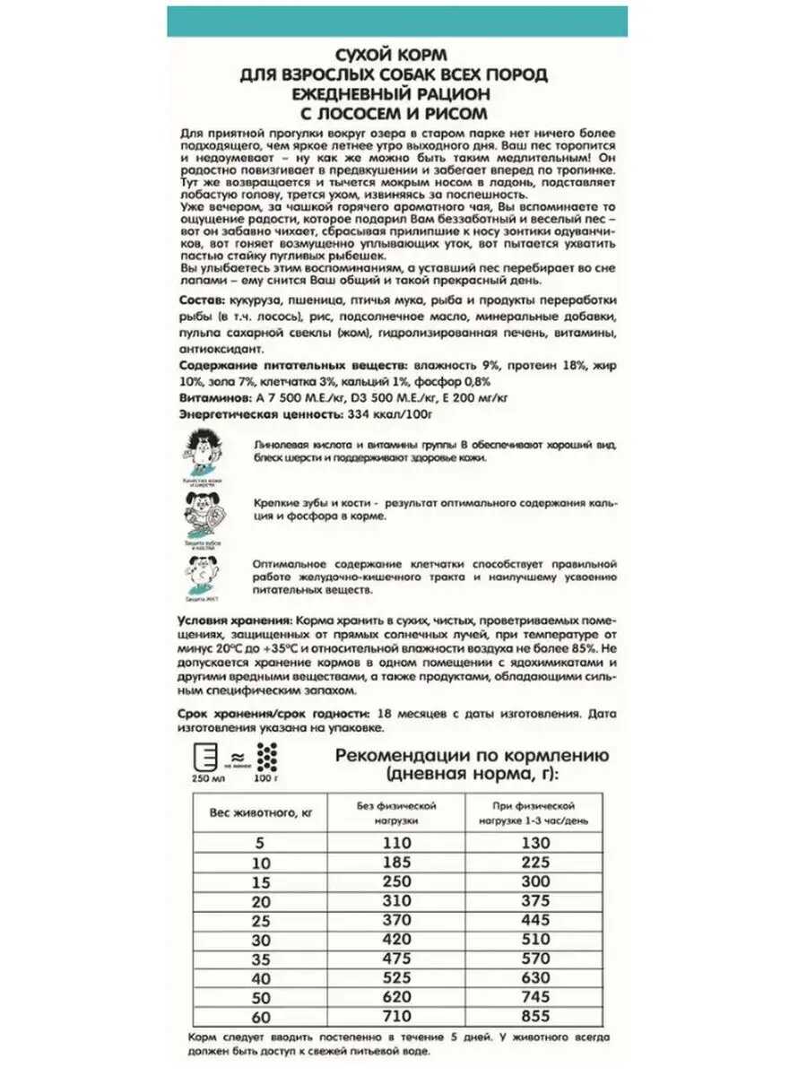 У корма состав нормальный, вполне подходит для ежедневного рациона. Есть клетчатка, так что пищеварение у наших собачек теперь работает на ура. Кушают с радостью, наедаются, корм сытный.