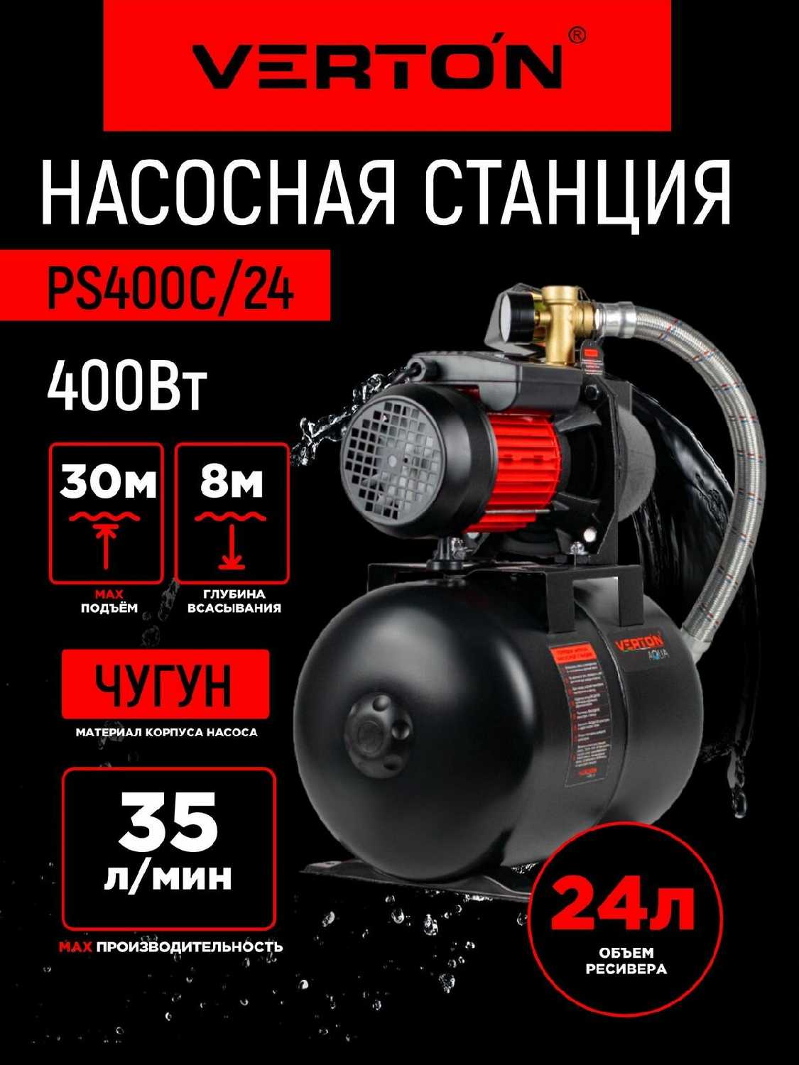 7.5/10 баллов 7.5/10 балловVerton Насосная станция (PS600S/24)Характеристики:- тип поверхностного насоса: насосная станция