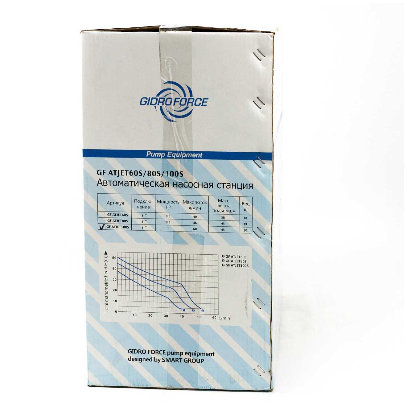 GIDRO FORCE Насосная станция GIDROFORCE ATJET 100S, доп. воронка и сальник (чугун, 750 Вт, мощность всасывания 1100 Вт подача воды 52 л/мин, напор 50 м, гидробак 24 л)
