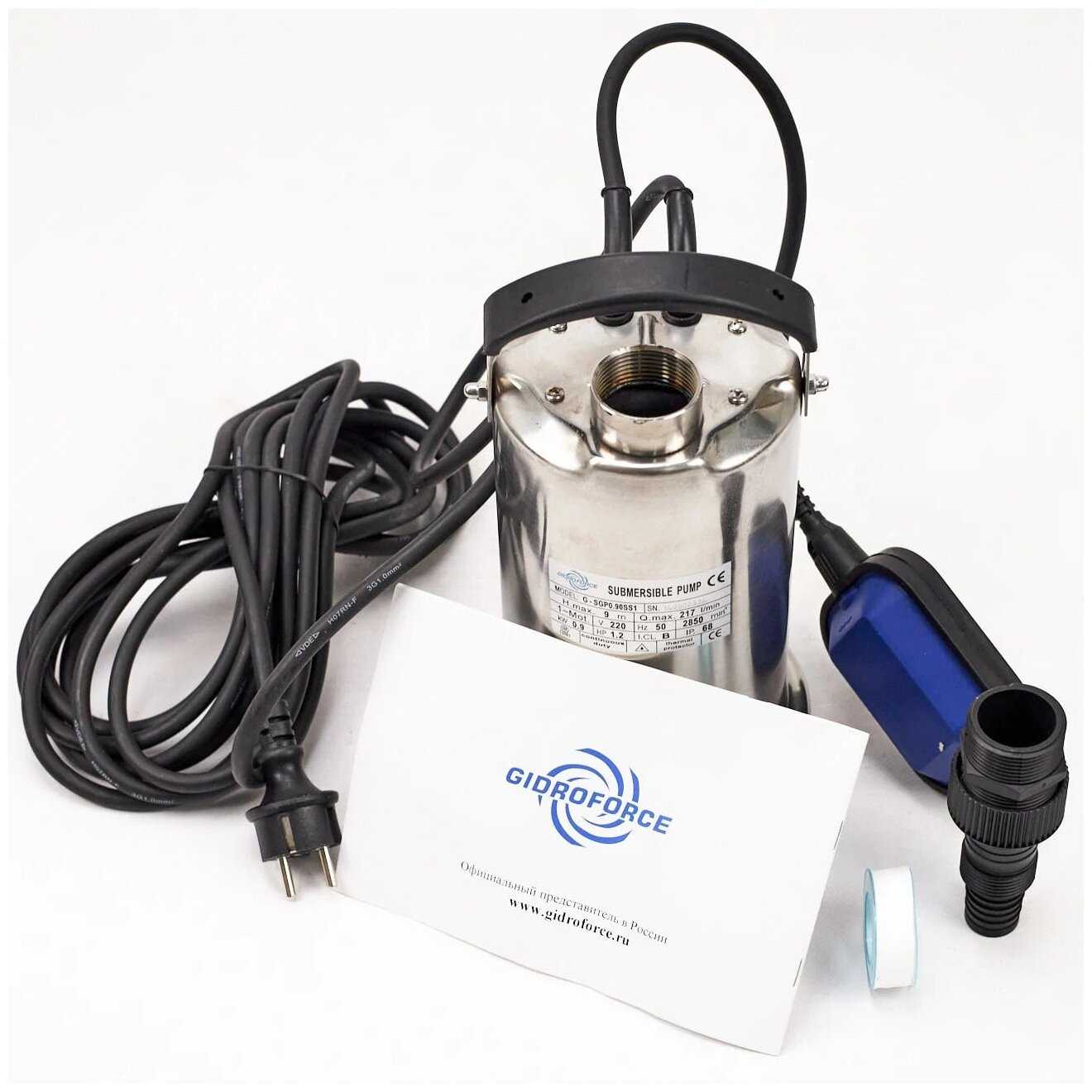 GIDRO FORCE Дренажный насос для грязной воды с поплавком GIDROFORCE SGP 0.90 SS1 (нерж. сталь, 900 Вт, 250 л/мин)