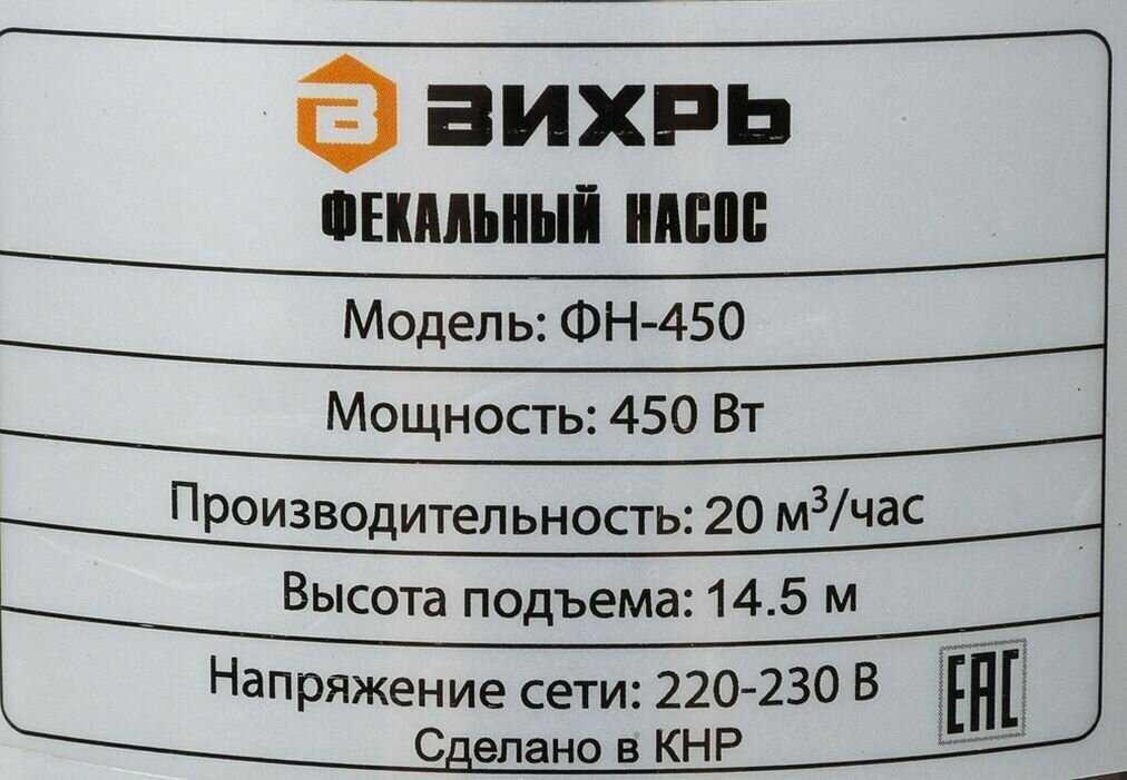Характеристики:- погружной фекальный