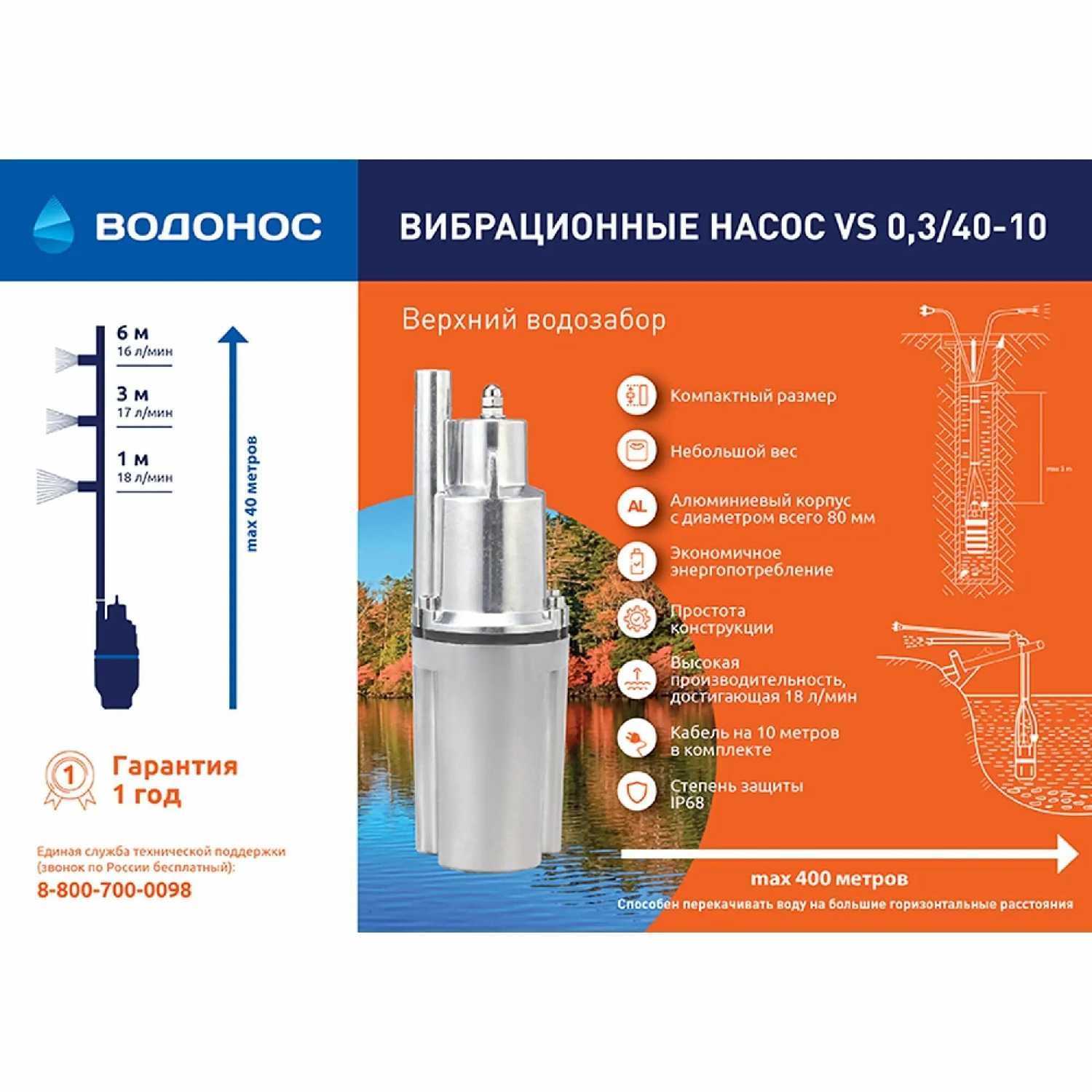 ЗУБР 15 м провод, с нижним забором воды, насос вибрационный Родничок-Н НВН-15 Мастер