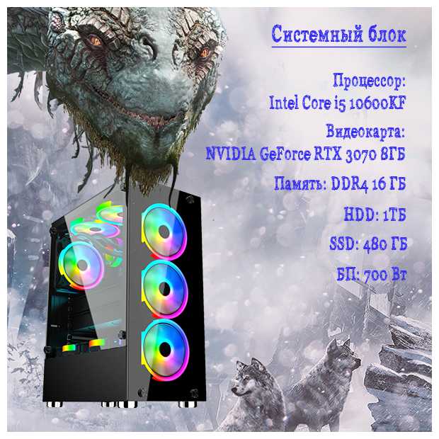 TopComp AK 121970477 (Intel Core i5 10600Kf 4.1 ГГц, RAM 16 Гб, 1480 Гб SSD|HDD, NVIDIA GeForce RTX 3070 8 Гб, Без ОС)