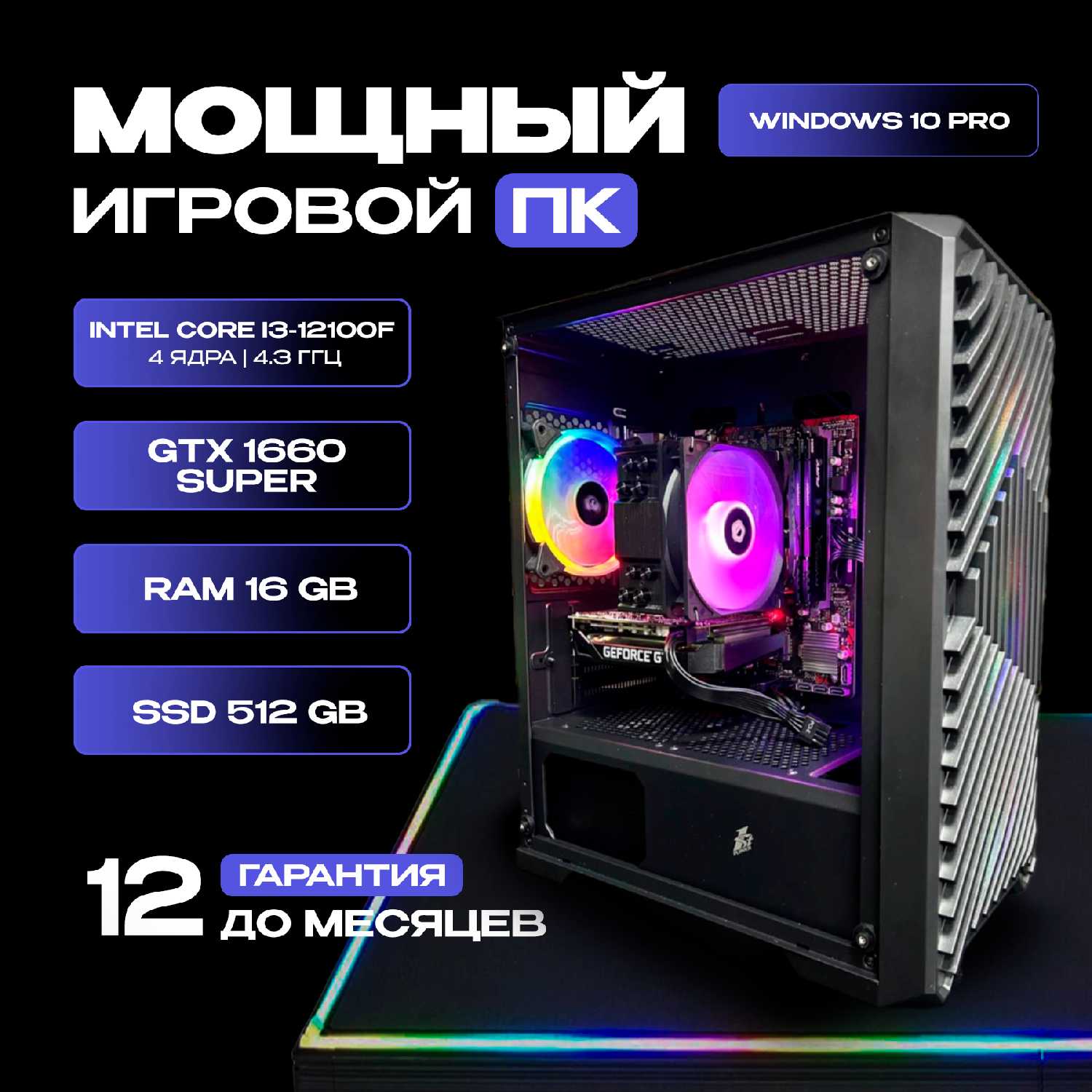 Характеристики:- процессор: Intel Core i3-12100F