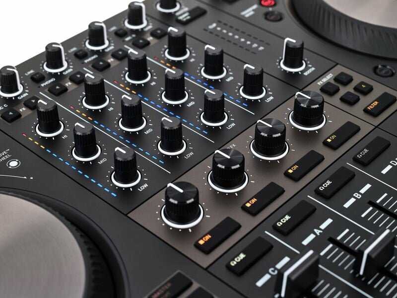 - + Топовый контроллер среди 4-х канальных конкурентов, отличный звук, широкие возможности подключения дополнительных устройств