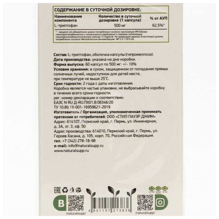 NaturalSupp L-Tryptophan 500мг (60 капсул)?