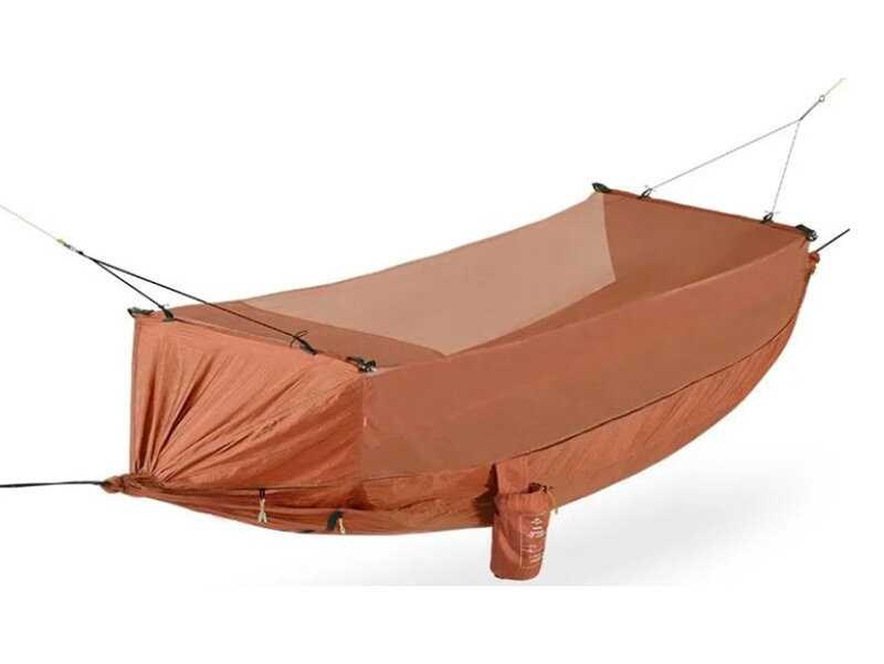 Удобство двойного дна трудно переоценить, можно поместить надувной или самонадувающийся коврик, который не будет скользить и пытаться сбежать, как это происходит в обычных гамаках.