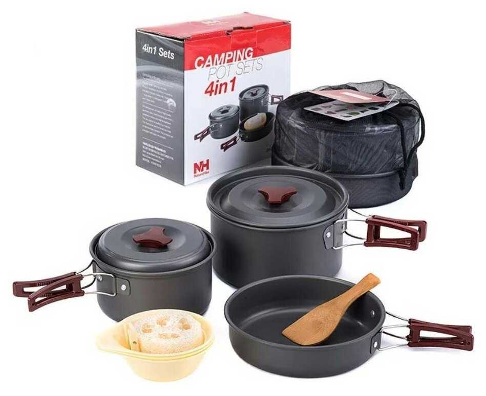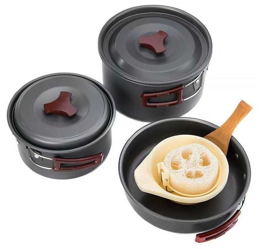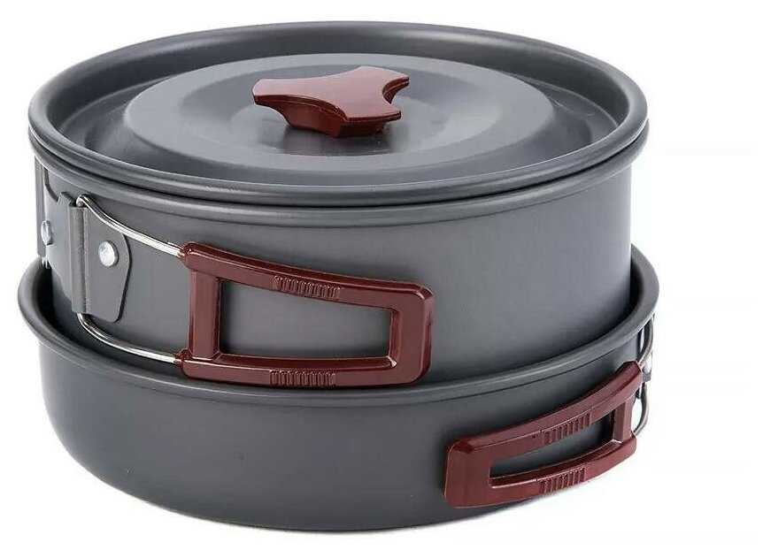 - + Компактный бюджетный набор, подходит для приготовления пищи на 2-3 человек. Мало весит, удобно брать на выезды на пару дней. Внутрь помещается складная горелка.
