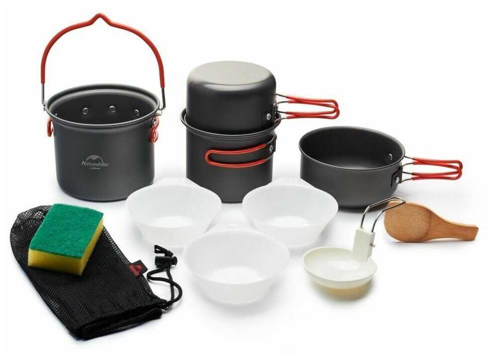 отличный набор посуды для походов, лёгкий, компактный. сами ручки хлипковаты и боюсь, что от костра резиновое покрытие на них сгорит