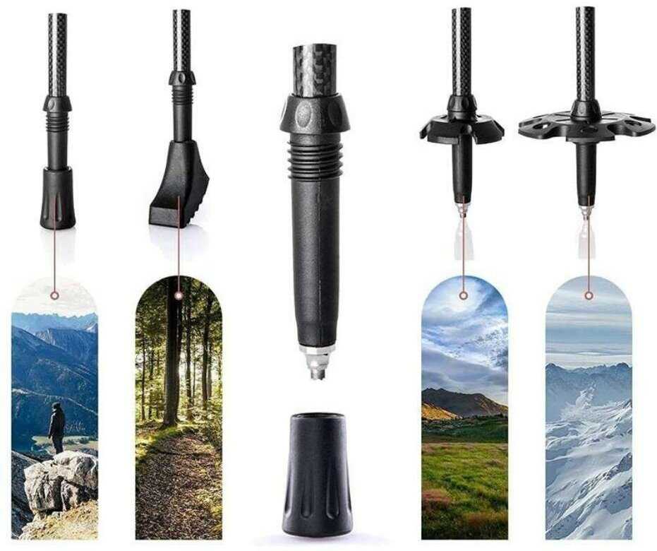 Дополнительная информация : | комплектация: обычные кольца, большие кольца для глубокого снега, защитные резиновые сапожки, резиновые сапожки со скошенным основанием, чехол для хранения |