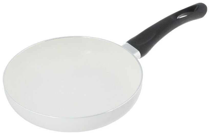 - + Главным критерием при выборе сковороды для меня было керамическое покрытие. И искала небольшой размер сковороды, чтобы было удобно разогревать уже приготовленную еду. Данная модель очень хорошо подходит для такой работы, у нее не очень толстое дно, поэтому эта сковорода легкая и на ней быстро все разогревается.