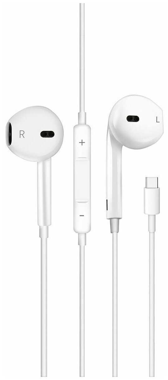 4.8/10 балловSsdcam Наушники проводные Type-C (для телефона, ноутбука, компьютера) с гарнитурой и регулировкой громкости NP-20 белые