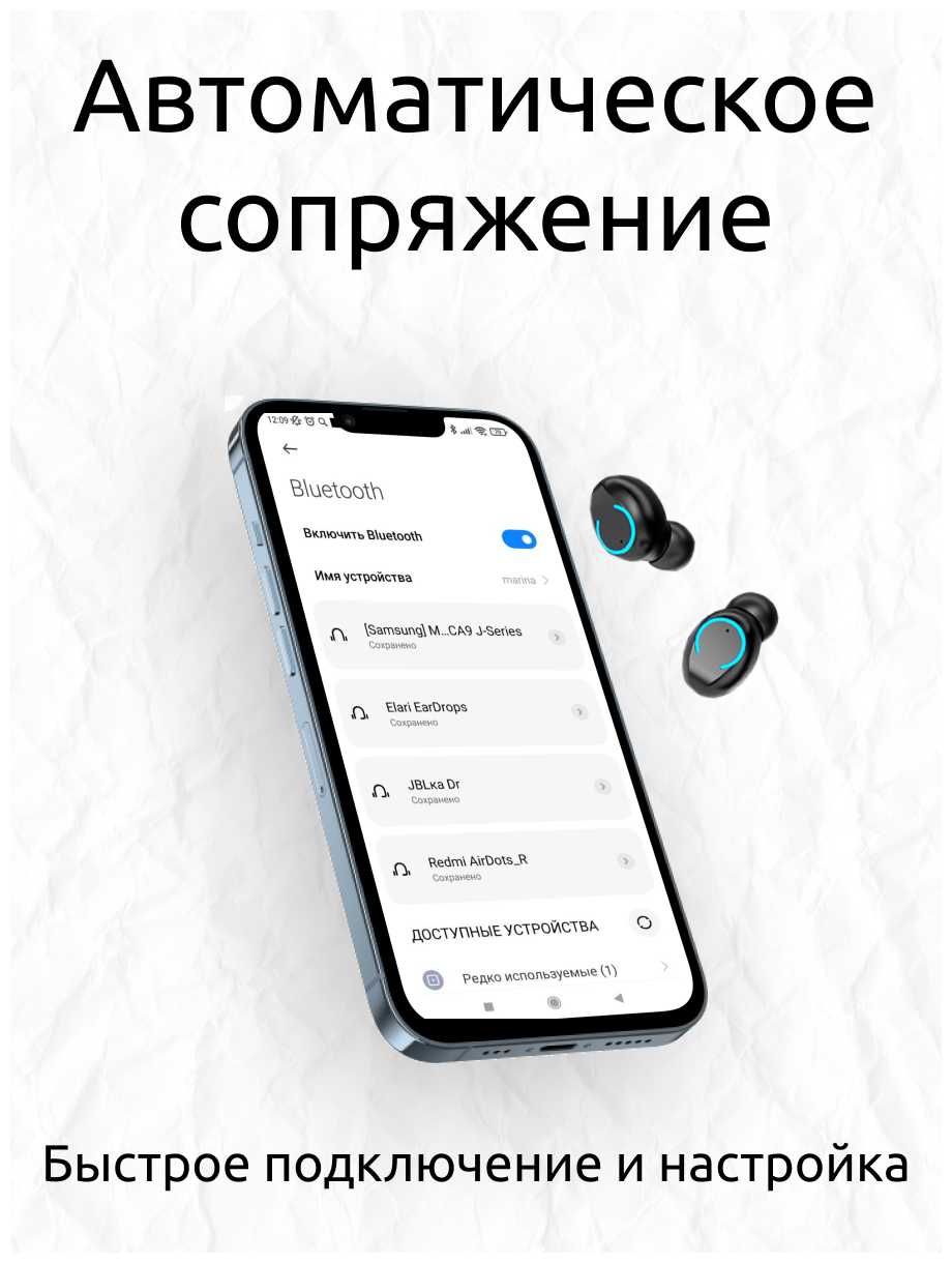 - тип устройства: беспроводные TWS-наушники