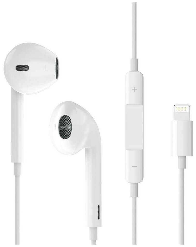 5.5/10 балловSsdcam Наушники проводные для Apple Iphone/iPad/ (разъем Lightning) с гарнитурой и регулировкой громкости NP-20 белые