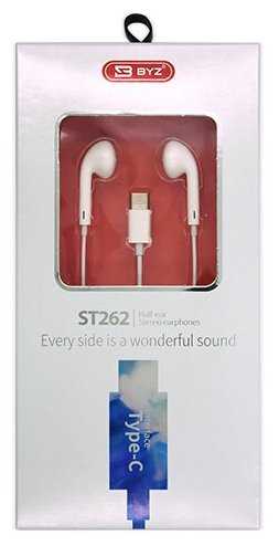 BYZ ST262 вкладыши с микрофоном, 1,2 метра, TYPE-C, белый