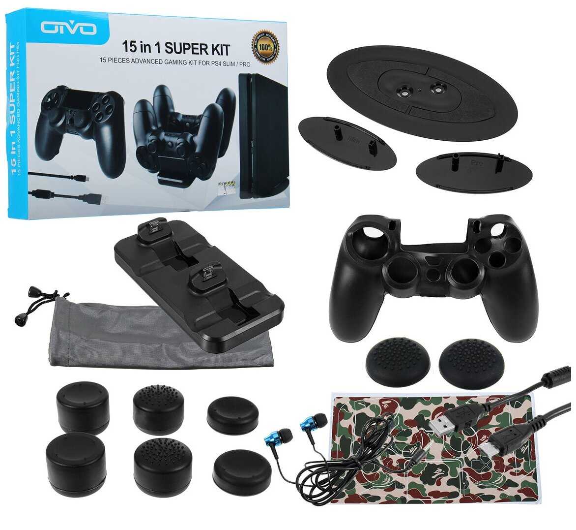 OIVO Набор аксессуаров 15 в 1 Super Kit для PlayStation 4 Slim/Pro (IV-P4T01)