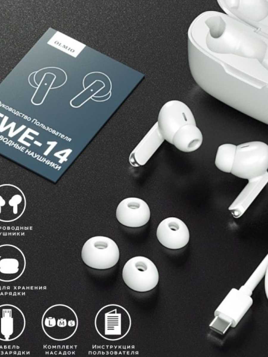OLMIO Наушники беспроводные с активным шумоподавлением (TWE-018)
