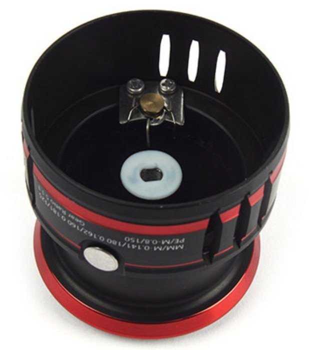 Шпуля имеет достаточную глубину для размещения значительного количества плетеного шнура, хотя некоторые пользователи отмечают, что фактическая вместимость может отличаться от заявленной. Отдельные владельцы столкнулись с тем, что на шпулю помещается около 100 метров шнура вместо заявленных 150. Глубокая конструкция шпули позволяет использовать катушку с разными диаметрами лесок для различных задач.