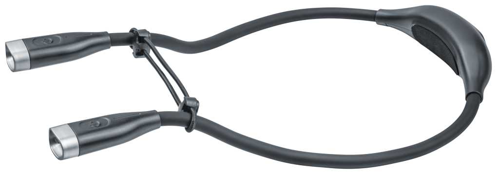 - + Хорошо светит и удобно сидит на шее и головном уборе