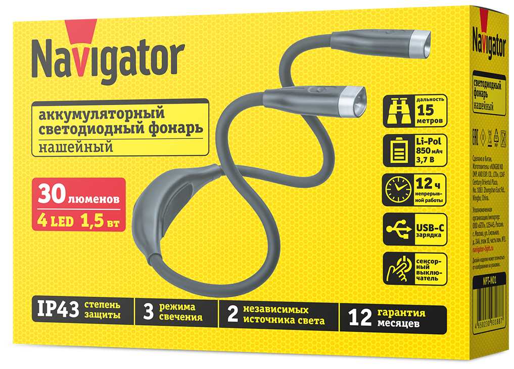Отзывы о Аккумуляторный светодиодный нашейный фонарь Navigator 93188 NPT-N01