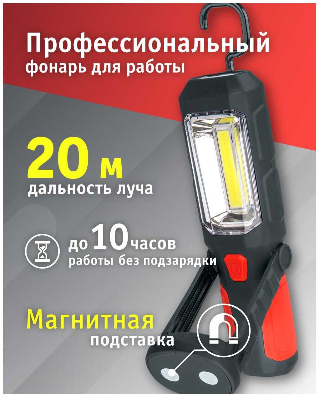 - + Фонарь очень понравился, удобный, заряд держит долго, ночью на даче самое то. Удобно что есть магниты и поворачивается и фиксируется.
