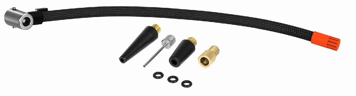 Может работать как с проводом так и без него, автоматически определяет давление, быстро качает, легко управляется, в комплекте было всё, четыре насадки, шланжик.