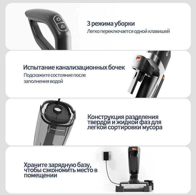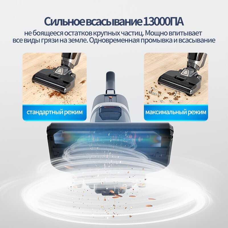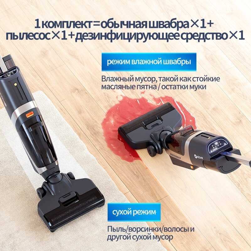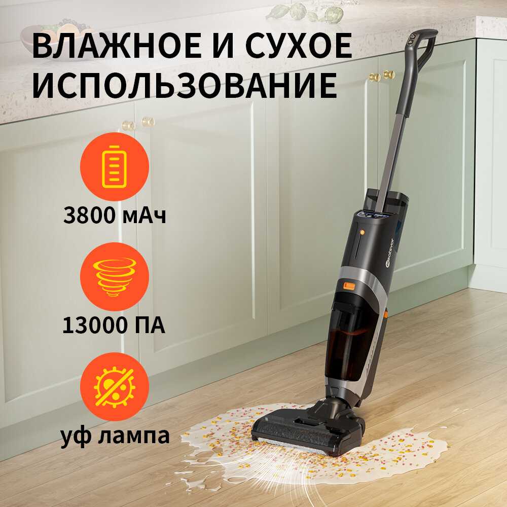 - Эффективная комбинация сухой и влажной уборки с мощным всасыванием: