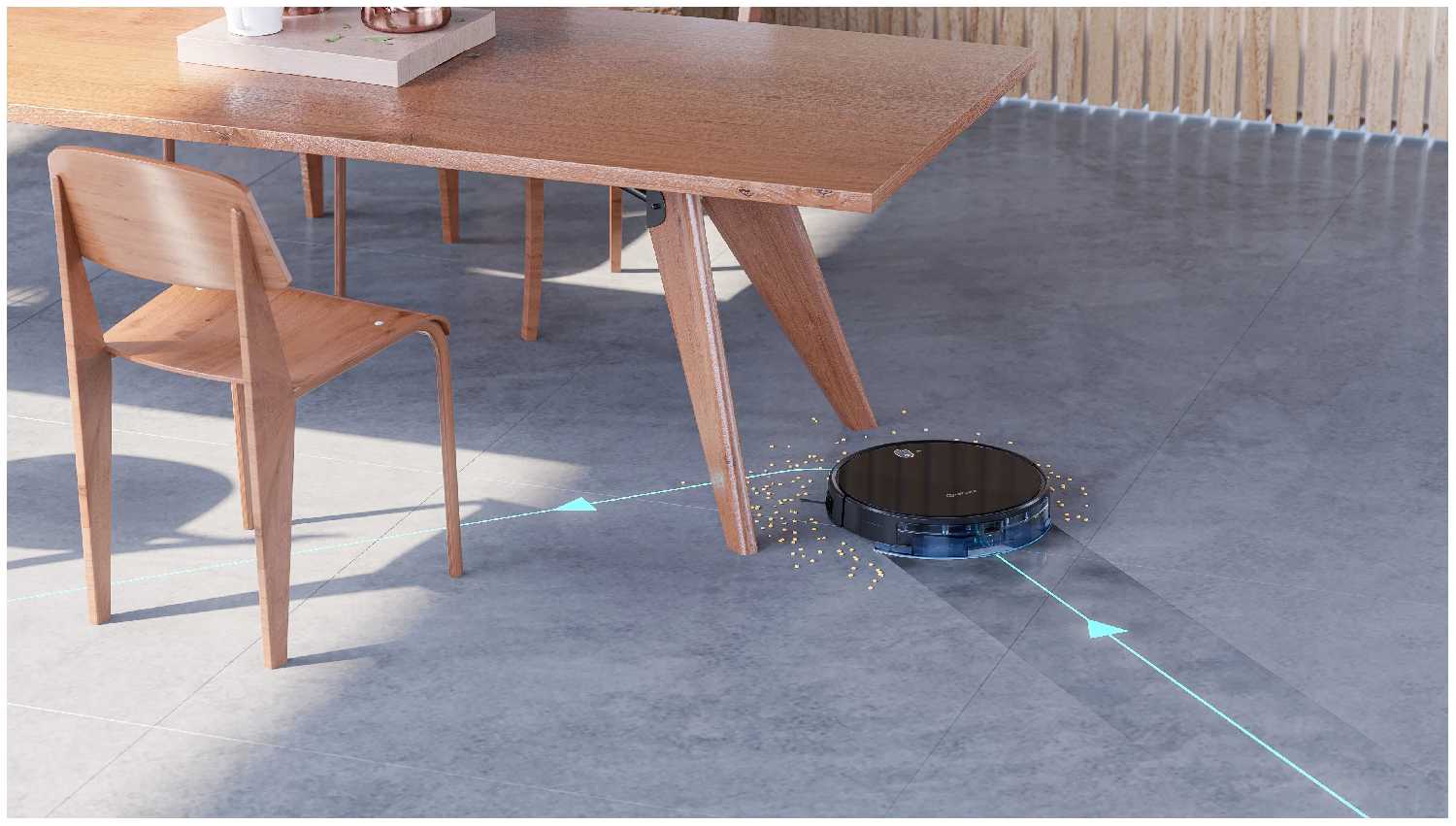 - Вибрация от моторов может сдвигать лёгкие предметы на полу (коврики, провода).