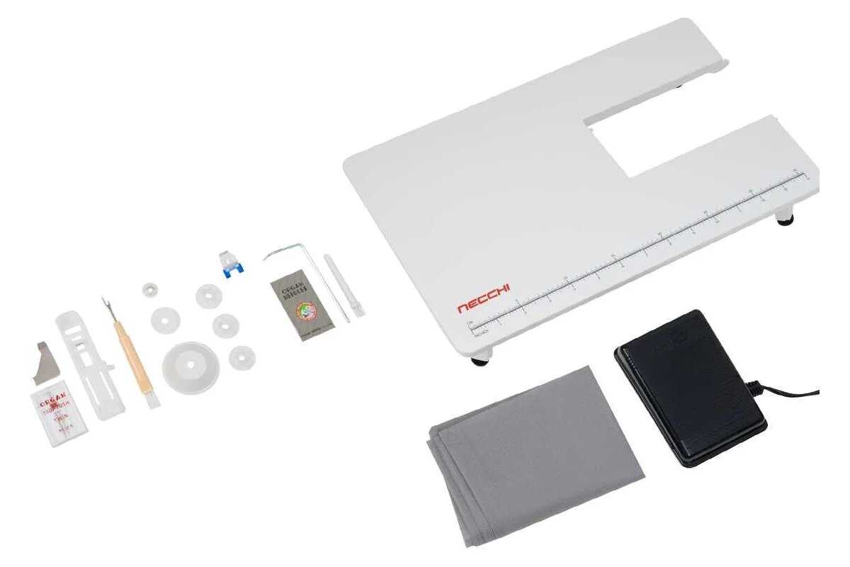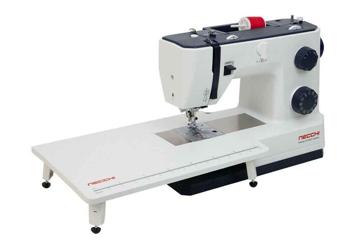 - + Хорошая, достойная швейная машинка, прошивает плотные ткани, приставной столик очень удобный