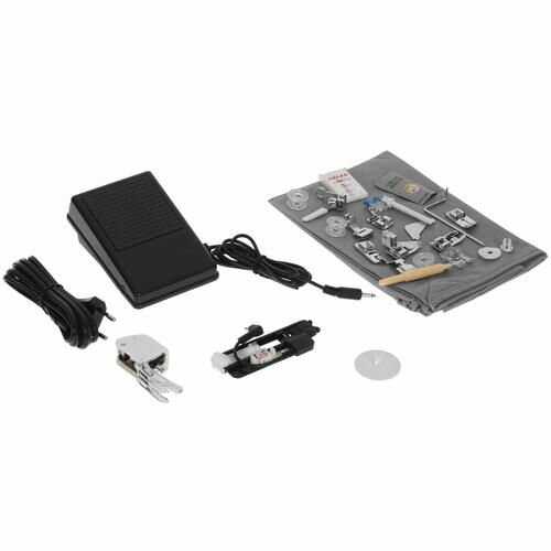 В комплекте поставляется 13 различных лапок, что покрывает большинство потребностей: для вшивания молний, пришивания пуговиц, подрубки и выполнения декоративных строчек. Также в коробке вы найдёте приставной столик для расширения рабочей зоны, педаль, набор игл и подробную инструкцию на качественной бумаге. Такая богатая комплектация избавляет от необходимости сразу докупать дополнительные аксессуары. -