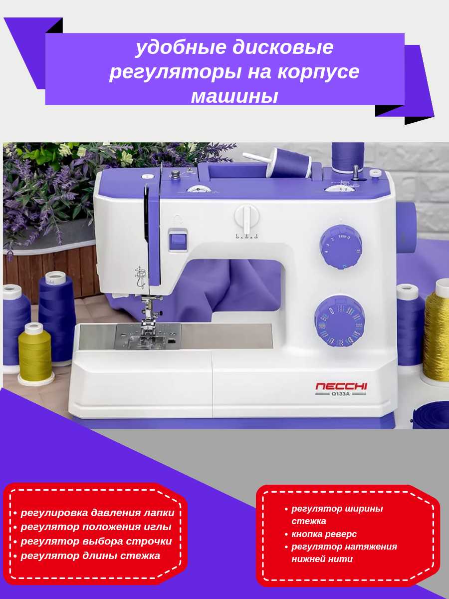 Работает одновременно хорошо и с шелком и с толстой джинсовой тканью. Реверс использую для усиления шва. Есть площадка для увеличения поверхности и удобный рукав. Все продумано. Шов получается ровный.