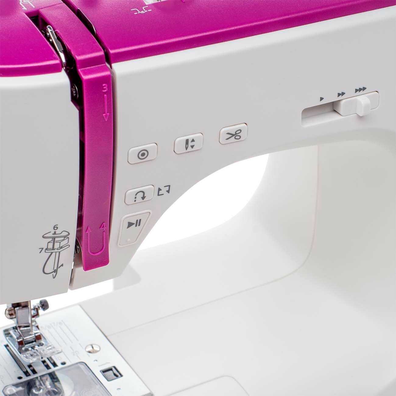 Функция шитья без педали реализована через кнопку старта/остановки на корпусе машины и высоко оценивается пользователями. Это особенно удобно при выполнении простых операций или когда необходимо освободить ноги. Управление скоростью при этом осуществляется плавно, что позволяет точно контролировать процесс шитья. Однако для сложных работ многие предпочитают традиционное управление педалью. -