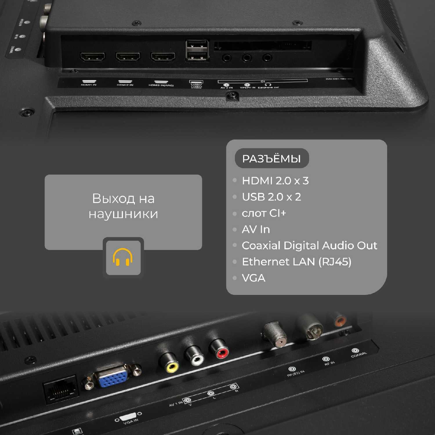 Разъемы и интерфейсы : | Ethernet - RJ-45, SCART, USB Type-A, вход HDMI, вход VGA, композитный видеовход, слот CI/CI+ |