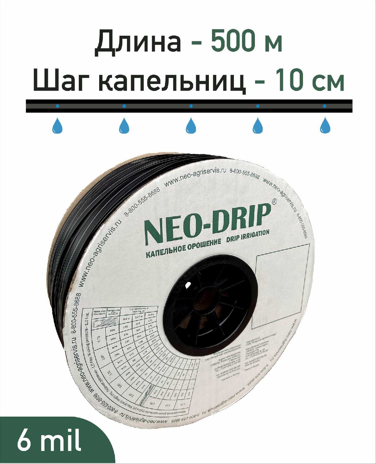 | Комплектация : | Капельная лента эмиттерная Neo-Drip 500 метров, шаг 20 см, 6mil - 1шт. |