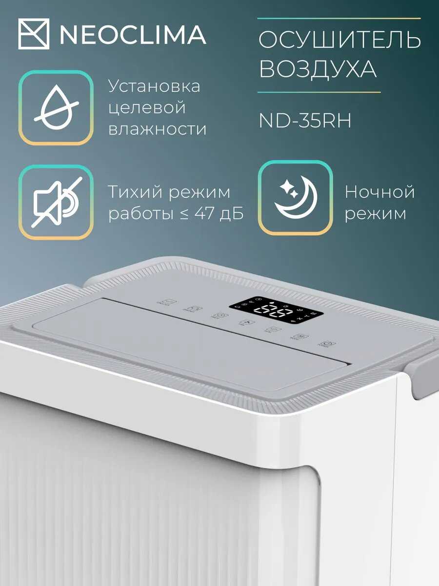 Работает, не плохой дизайн, в меру шумный, если сравнить по шуму с моделью Electrolux EDH-25L то Неоклима заметно тише, а при этом производительнее на 10л/сут.