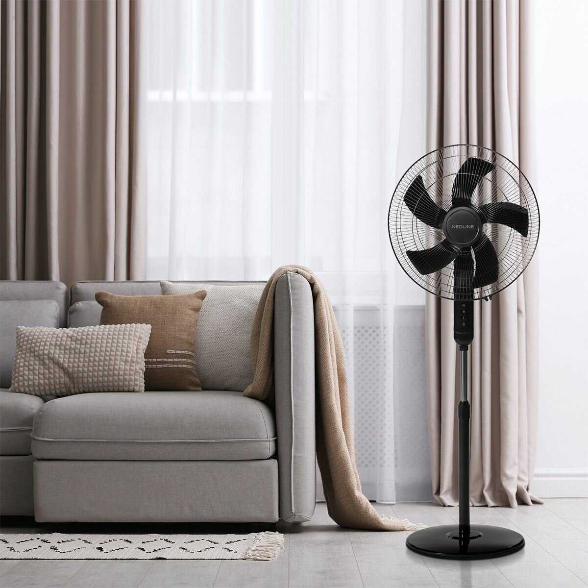 - Конструкция лопастей и мотора обеспечивает усиленный напор воздуха, что особенно ценно в жаркую погоду.