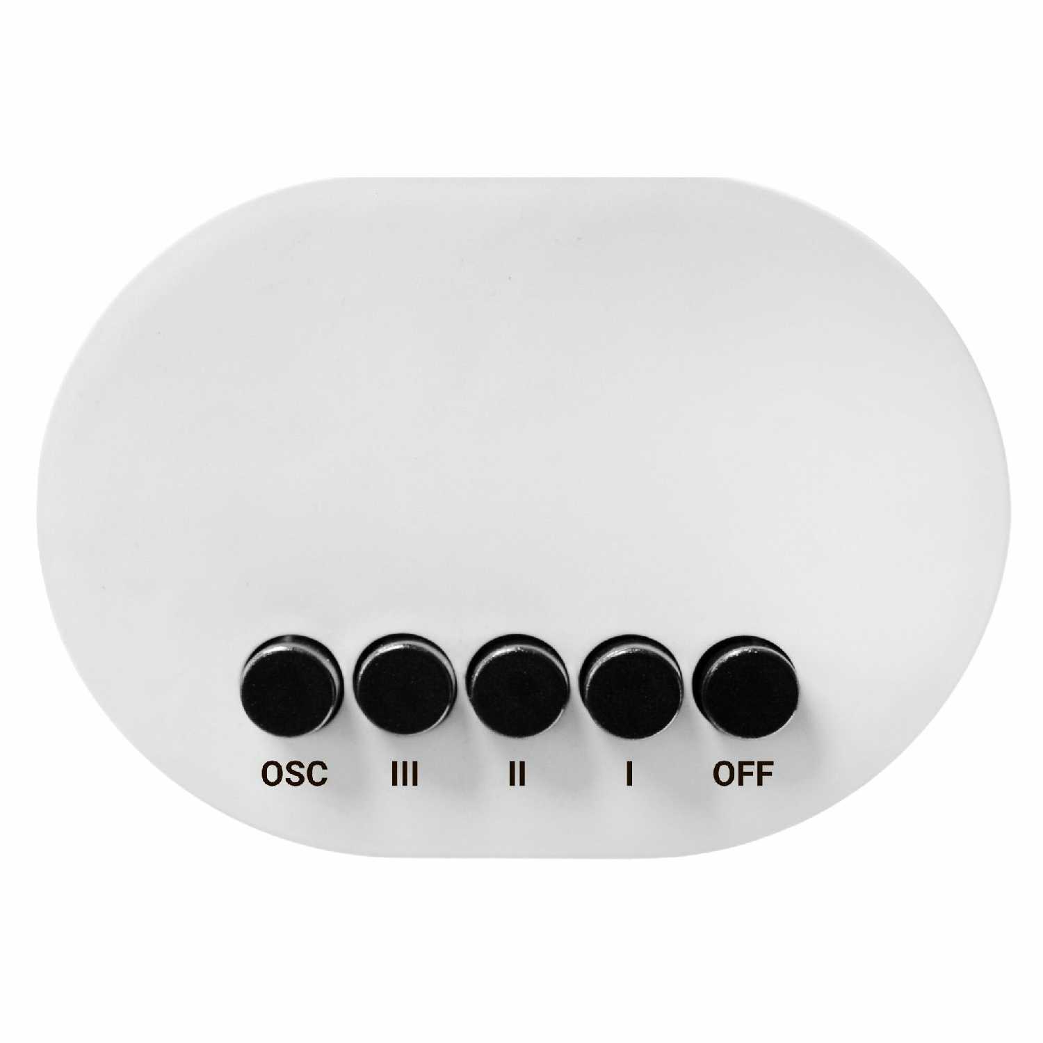 Наклон кольца фиксируется вручную с шагом 15 градусов — это позволяет направлять воздушную струю параллельно полу или под углом к дивану/кровати. Отсутствие пульта несколько ограничивает оперативную корректировку положения с расстояния. -