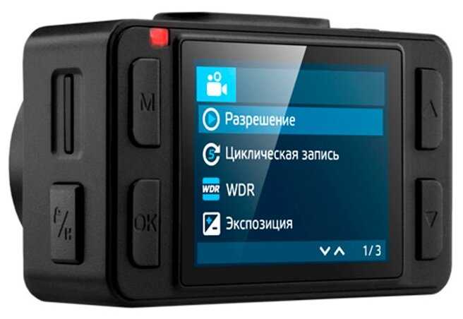 - + 2 камеры для записи, пишет в Full HD 1080p на обеих камерах. Защита от световых бликов. Поддержка карт памяти до 256 гигабайт. Записи с 2-ух разных камер на карте памяти сохраняются в разные папки. Звук в салоне автомобиля записывает. Когда датчик ускорения сработал, например, при попадании колесом в яму, то файл видеозаписи в этот момент приобретает статус «защитить от стирания».
