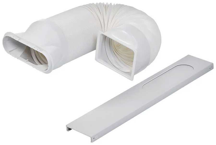 - Гибкая гофра длиной 1.5 м легко монтируется в раздвижные окна или самодельные пластиковые панели.