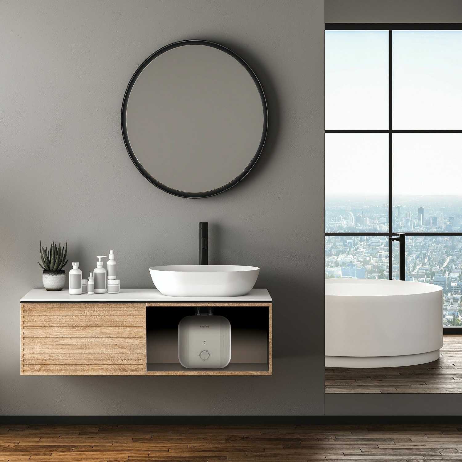 - + Удобный водогрей для установки под мойку на даче. Не требует установки на стену, хотя имеет такую возможность. Его достаточно просто поставить под раковину, т.к. отводы для подключения находятся сверху устройства.