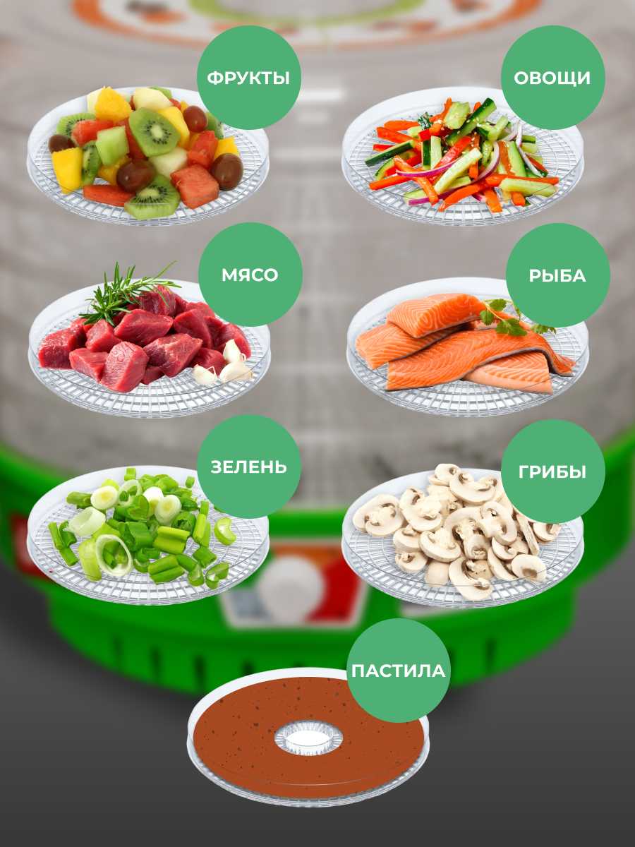 пробовали сушить разные виды продуктов: помидоры, перец, яблоки, сливы. все просто супер. работает тихо, вмещает в себя много, что экономит время. мы в восторге.