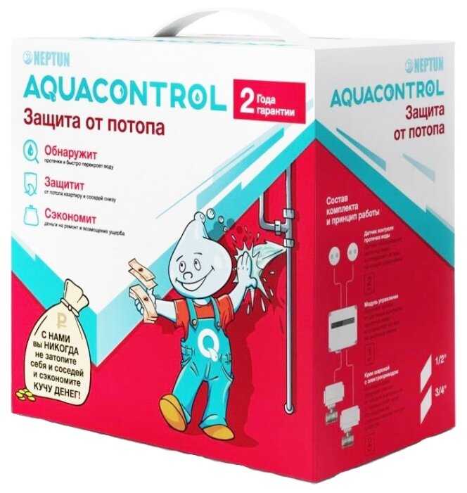 | Подробная комплектация : | модуль управления Neptun Base – 1шт, кран с электроприводом серии Neptun Aquacontrol 220 В – 2шт., датчик контроля протечки воды SW007 - 2 шт. |