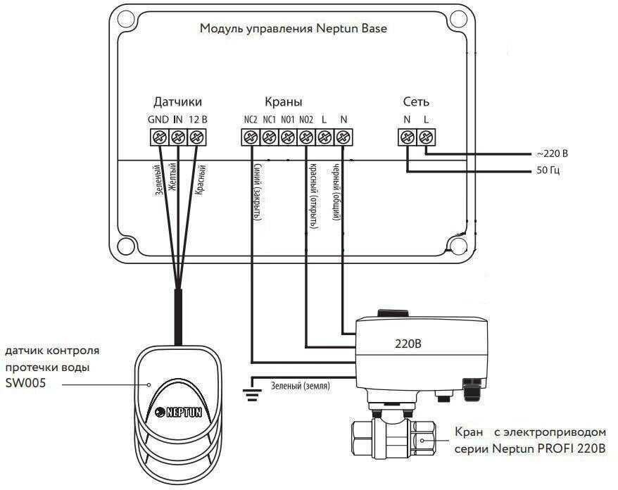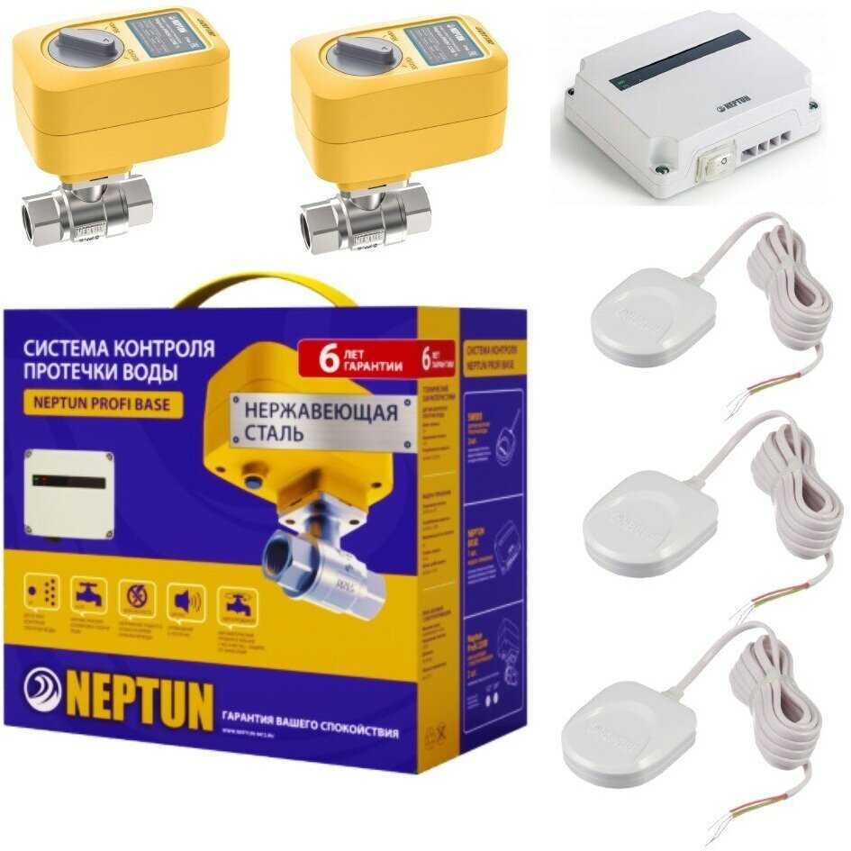 | Подробная комплектация : | датчики проводной SW005 — 3шт., кран шаровый из нержавеющей стали с электроприводом Neptun Profi 220В — 2шт., модуль управления Neptun Base — 1 шт |