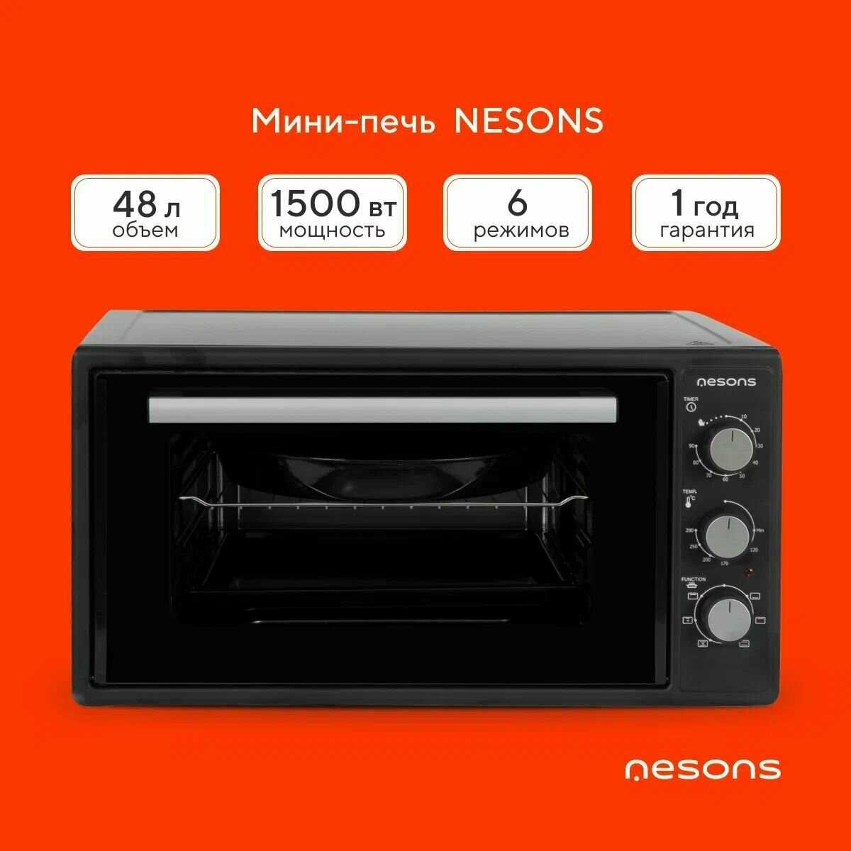 Отзывы о Мини-печь Nesons МО-48CRB 1500Вт, 6 режимов, 48л, гриль