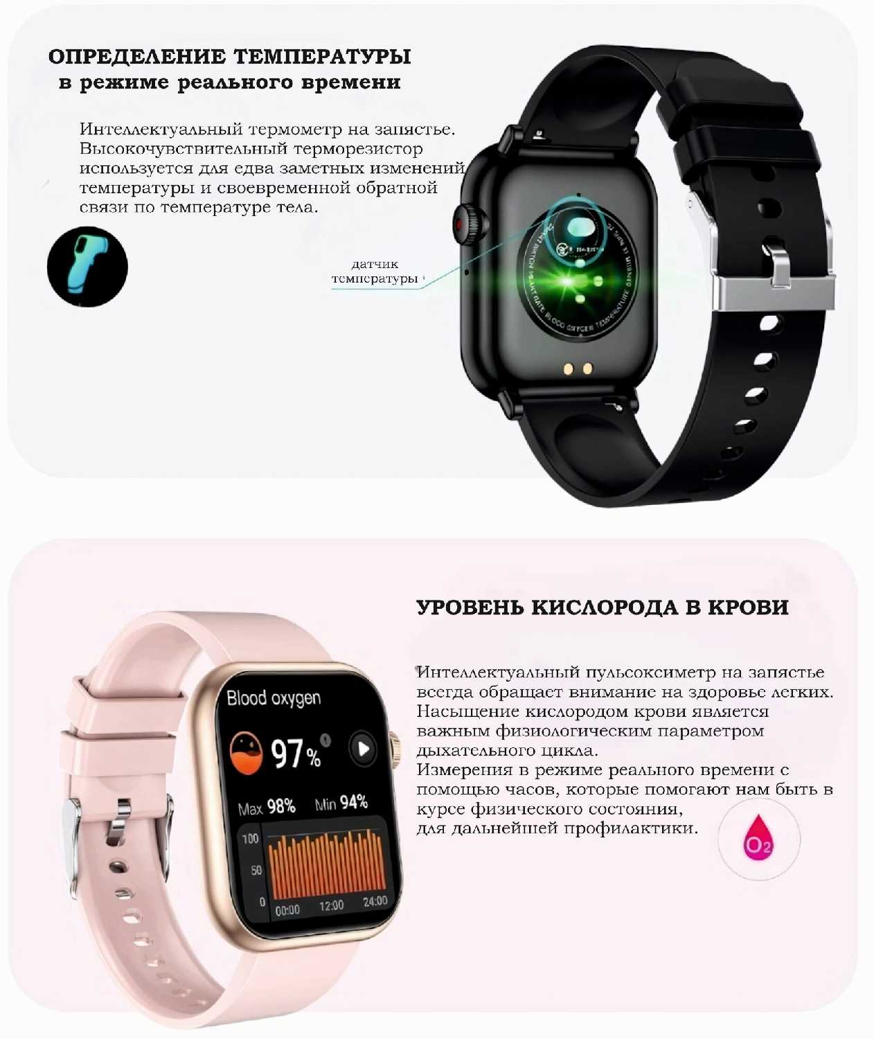 | Мониторинг : | пульса, температуры тела, тонометр, уровня кислорода в крови, физической активности |