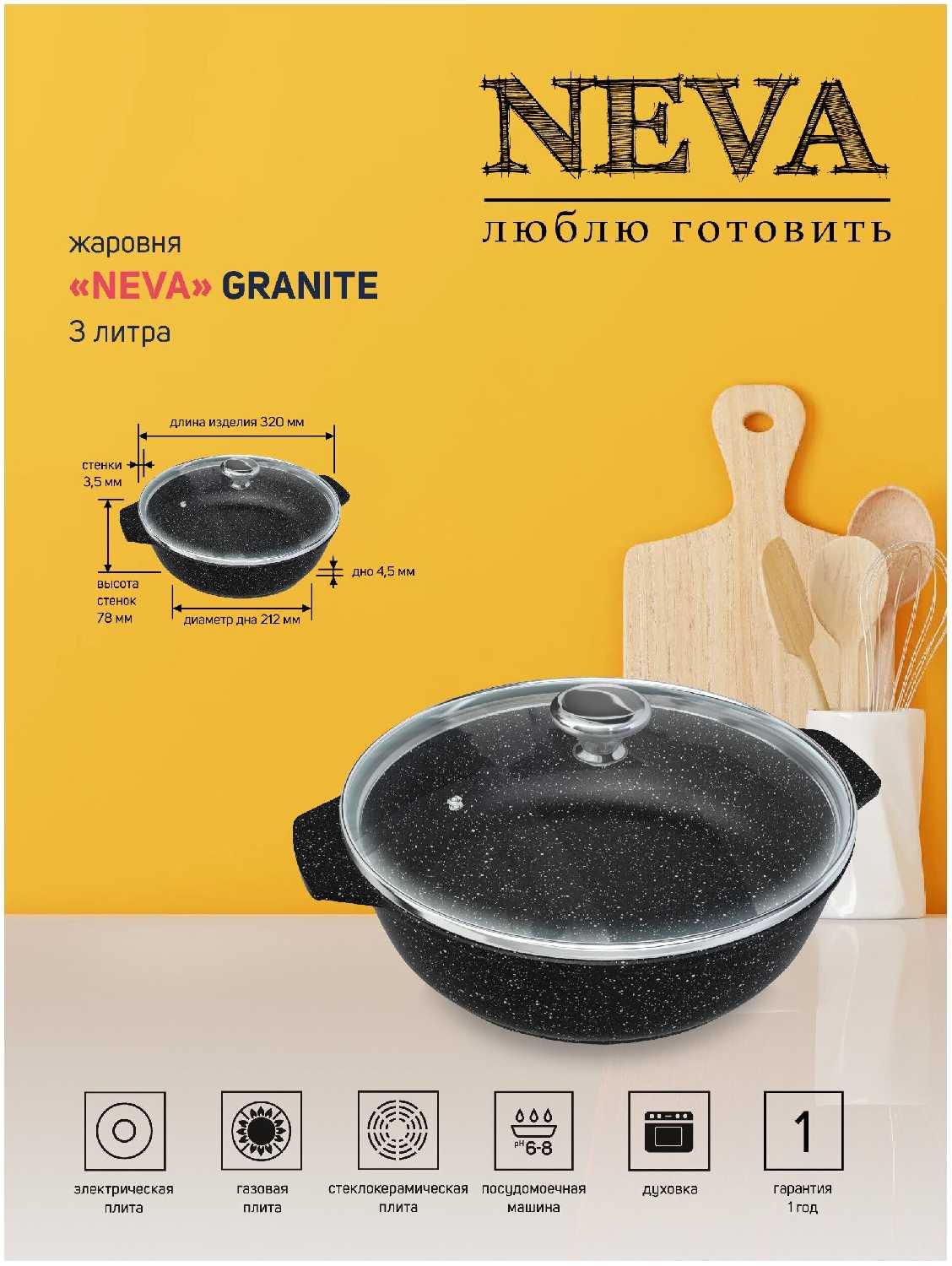 Отзывы о Жаровня со стеклянной крышкой "Neva Granite" 3л