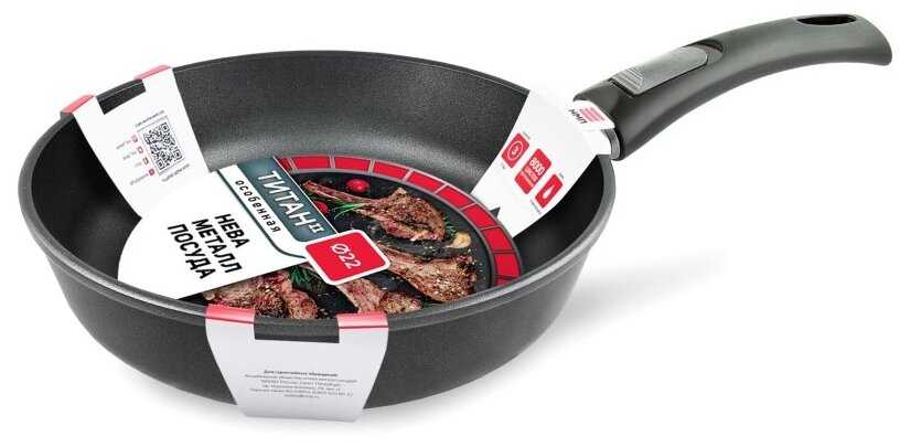 - Сковорода визуально воспринимается как профессиональная посуда, что подтверждается дизайном линий серии Titan.