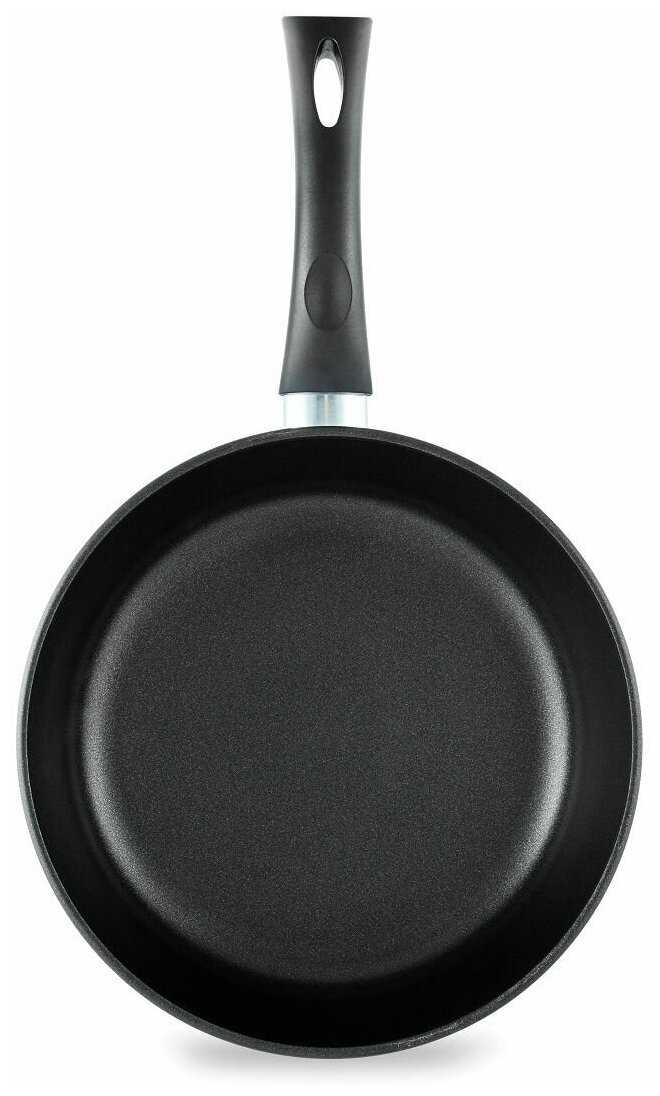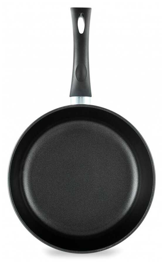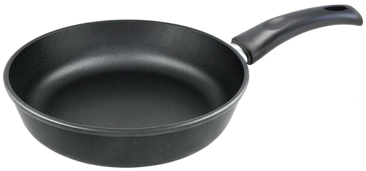 - + Отличная сковорода, высокие бортики, можно жарить и тушить, продукты не прилипают ко дну, экономия на масле.